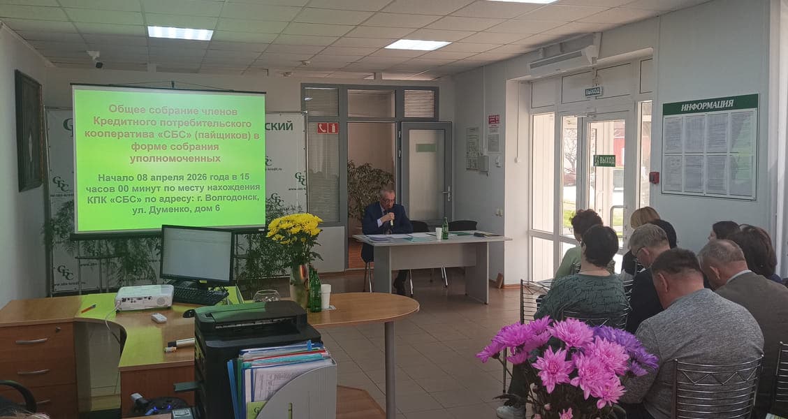 8 апреля 2026 года в Головном офисе КПК «СБС» в г.Волгодонске состоялось Общее собрание членов Кредитного потребительского кооператива «СБС» (пайщиков) в форме собрания Уполномоченных.