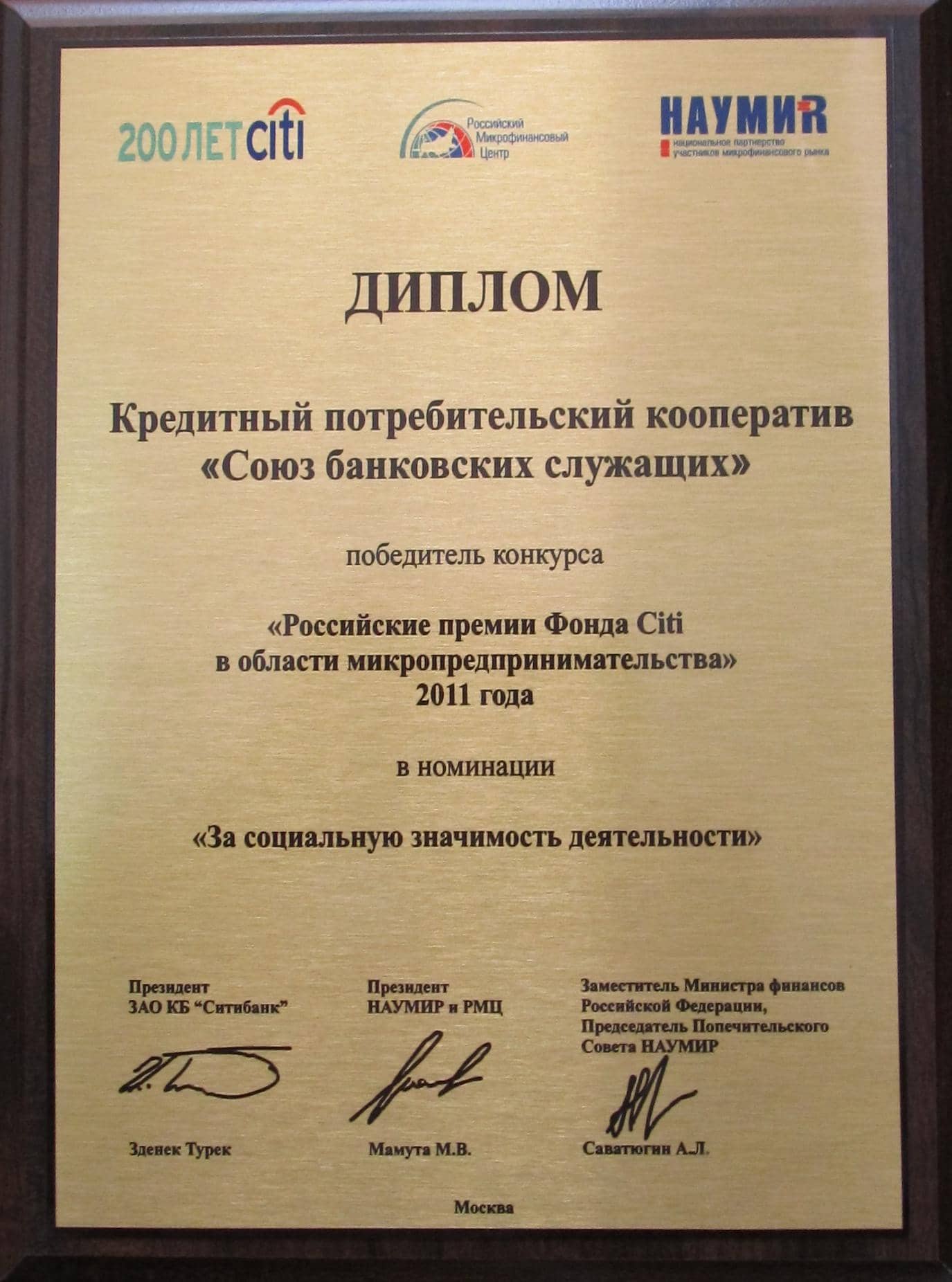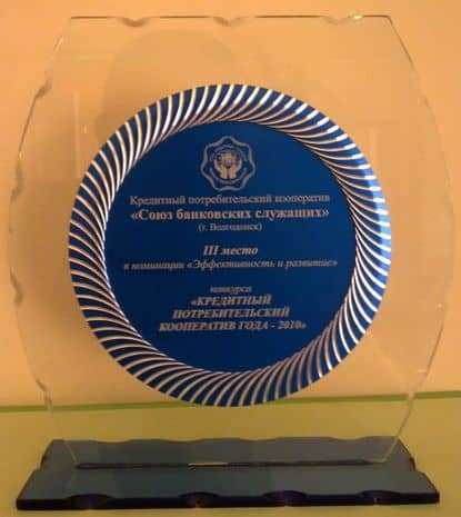 Призовое место в конкурсе "Кредитный Потребительский Кооператив года - 2010" в номинации "Эффективность и развитие".