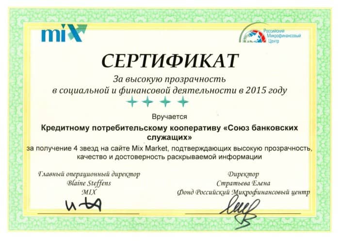 Кооператив получил награду "За стабильную деятельность и приверженность кооперативным принципам" во всероссийском конкурсе "Кредитный потребительский кооператив года - 2014".