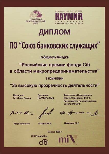 "СБС" признан лучшей микрофинансовой организацией 2008 года (Российские премии фонда CITI).
